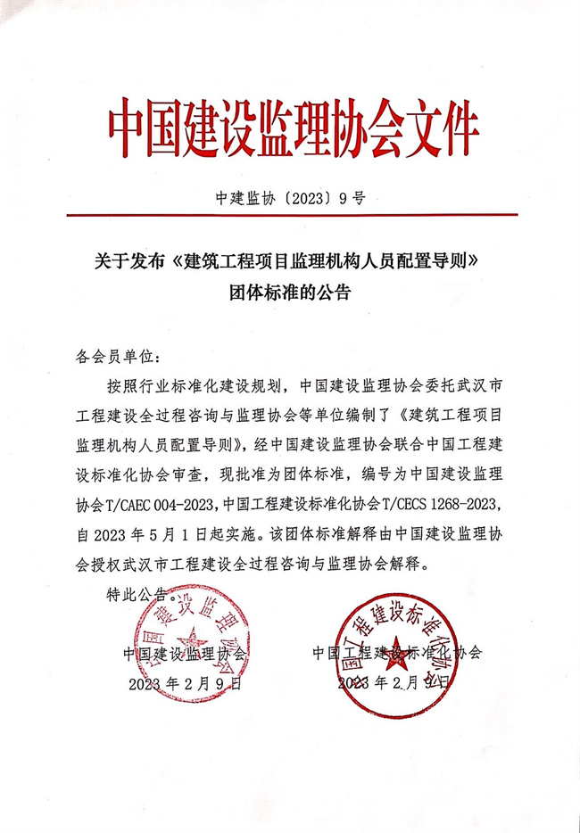 星空网页版发布《建筑工程项目监理机构人员配置导则》团体标准的公告