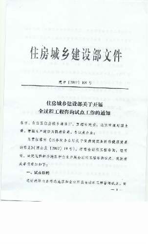 住房城乡建设部星空网页版开展全过程工程咨询试点工作的通知