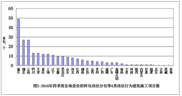 现将2018年四季度各地住房和城乡建设主管部门上报的建筑工程施工转包违法分包等违法行为查处情况通报如下: