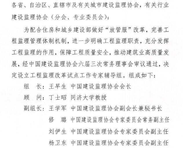 星空网页版星空网页版设立工程监理改革试点工作专家辅导组的通知