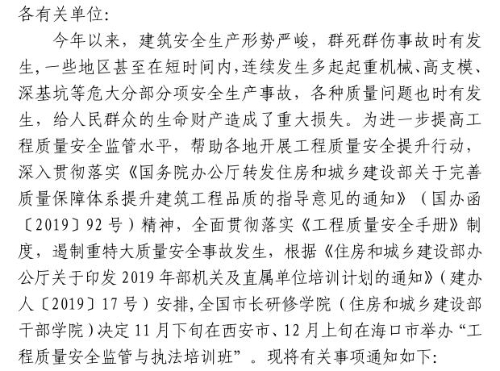 星空网页版举办工程质量安全监管与执法培训班的通知