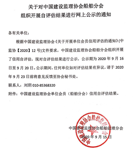 星空网页版对星空网页版船舶分会组织开展自评估结果进行网上公示的通知