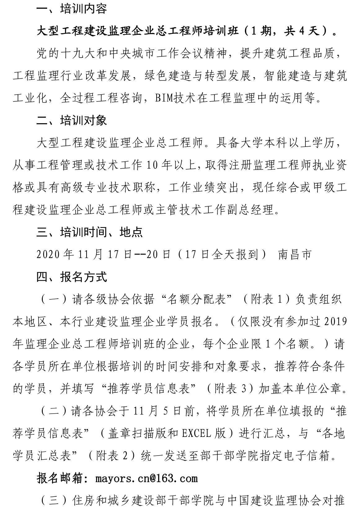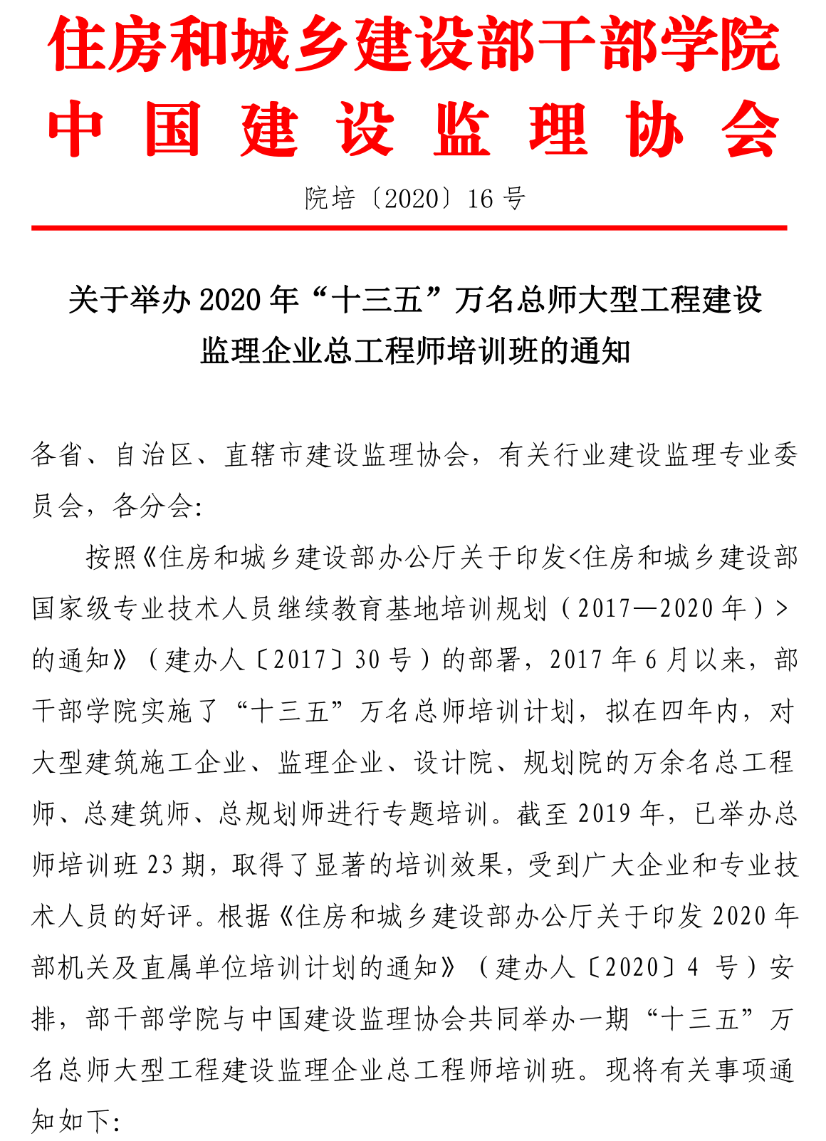 星空网页版举办2020年“十三五”万名总师大型工程建设监理企业总工程师培训班的通知