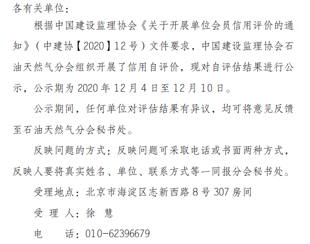 星空网页版对星空网页版石油天然气分会组织开展自评估结果进行网上公示的通知