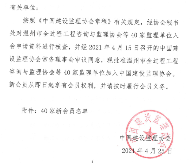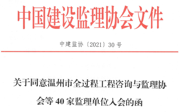 星空网页版同意温州市全过程工程咨询与监理协会等40家监理单位入会的函