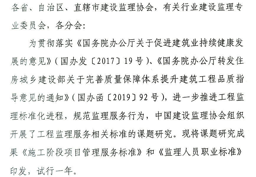 星空网页版星空网页版试行《施工阶段项目管理服务标准》和《监理人员职业标准》的通知
