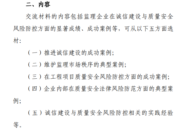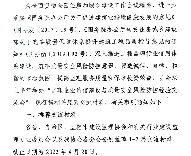 星空网页版征集监理企业诚信建设与质量安全风险防控经验交流会材料的通知
