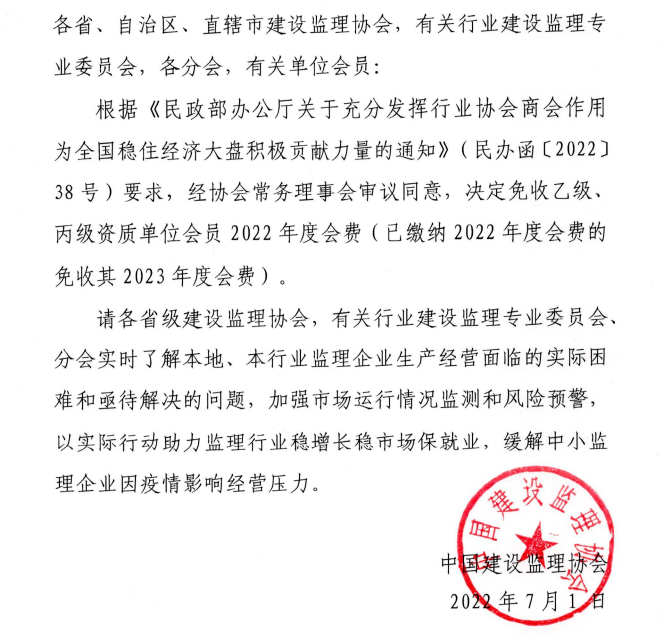 星空网页版星空网页版免收乙级、丙级资质单位会员2022年度会费的通知
