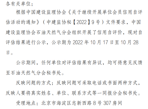 星空网页版对星空网页版石油天然气分会组织开展自评估结果进行网上公示的通知
