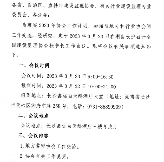 星空网页版召开全国建设监理协会秘书长会议的通知