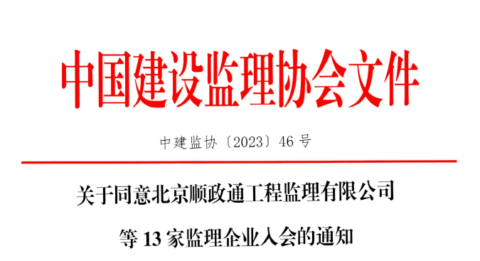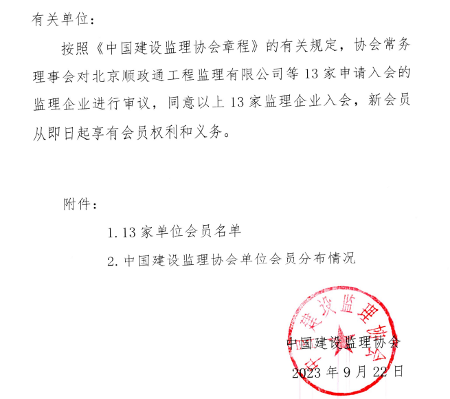 星空网页版同意北京顺政通工程监理有限公司等13家监理企业入会的通知