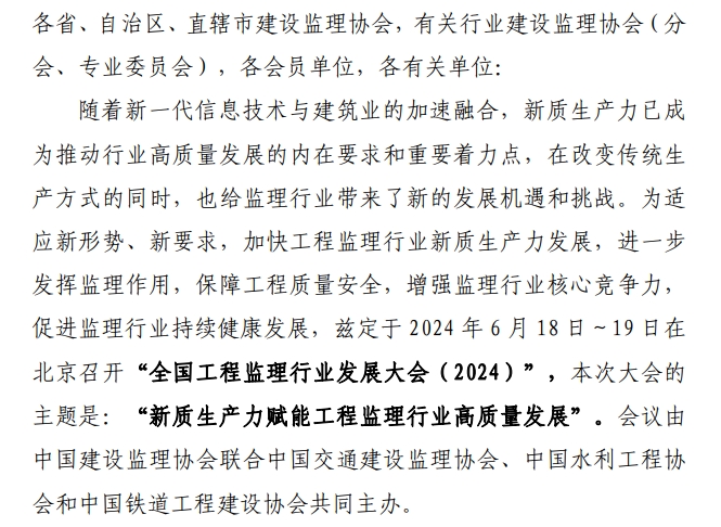 全国工程监理行业发展大会(2024)1号通知