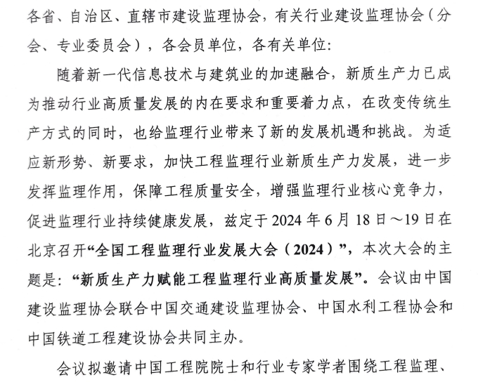 星空网页版星空网页版召开全国工程监理行业发展大会(2024)的通知