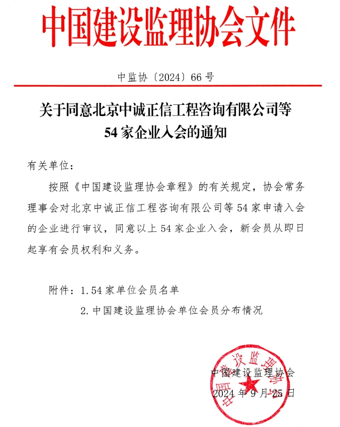 星空网页版同意北京中诚正信工程咨询有限公司等54家企业入会的通知