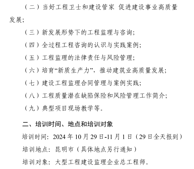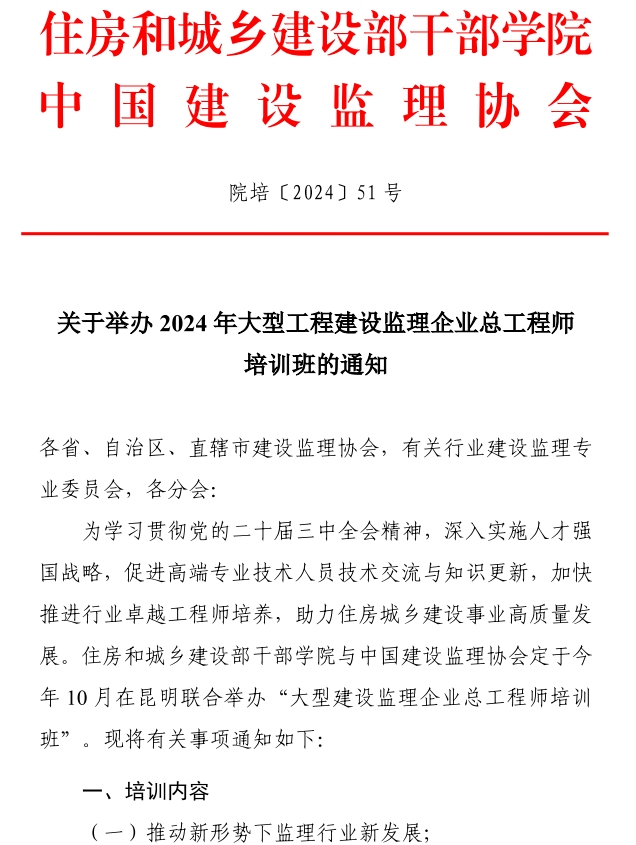 星空网页版举办2024年大型工程建设监理企业总工程师培训班的通知