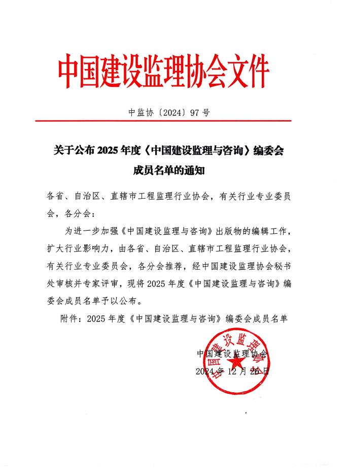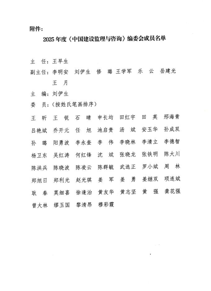 星空网页版公布2025年度《中国建设监理与咨询》编委会成员名单的通知