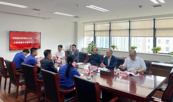 在豫通工程管理有限公司,总经理王鹏辉汇报了公司发展历程、基本概况、业绩成果和未来发展方向等情况。王早生会长参观了各业务部门办公环境,并与公司管理层进行座谈交流。王早生会长对豫通管理公司28年的发展历程予以肯定,同时从企业股权激励、数字化建设及全过程工程咨询开展情况等多方面提出了重要指导意见。
