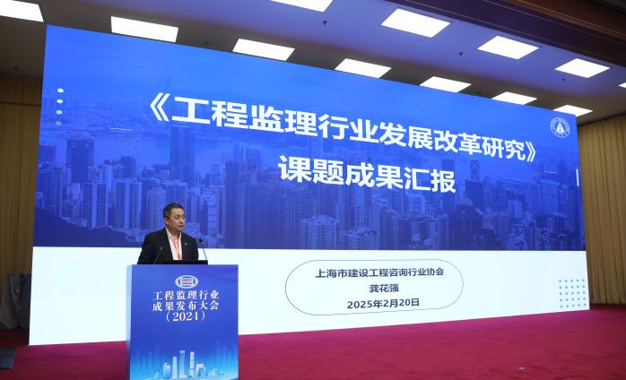 会议第四阶段:北京市建设监理协会李伟就《工程监理合伙制企业与质量保险服务研究》,上海市建设工程咨询行业协会龚花强就《工程监理行业发展改革研究》,山东省建设监理与咨询协会陈文就《建筑工程现场监理数智化实施方案研究》课题研究进行成果汇报。