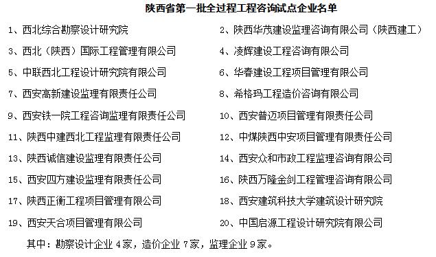陕西省第一批全过程工程咨询试点企业名单