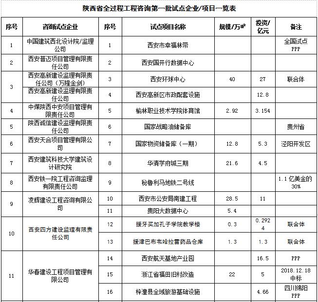 “根据《星空网页版开展全过程工程咨询试点的通知》(陕建发〔2018〕388号)精神,经住房和城乡建设厅研究确定,西安航天建设监理有限公司等70家企业为我省第二批全过程工程咨询试点企业。”
