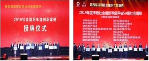2020年1月15日下午,深圳市民政局、市社会组织管理局、市社会组织总会在深圳湾体育馆举行第四届深圳社会组织年度盛典暨中国公益领袖鹏城对话活动。市监理工程师协会再次蝉联深圳市第四届“社会组织风云榜”,荣获“2019深圳市社会组织年度创新案例奖”,同时被授予“深圳市5A级社会组织”。市政府副市长黄敏、市政协副主席陈倩雯、王璞等领导出席活动并为获奖社会组织颁奖、授牌。来自全市各社会组织及社会各界人士约8000人参加了活动。