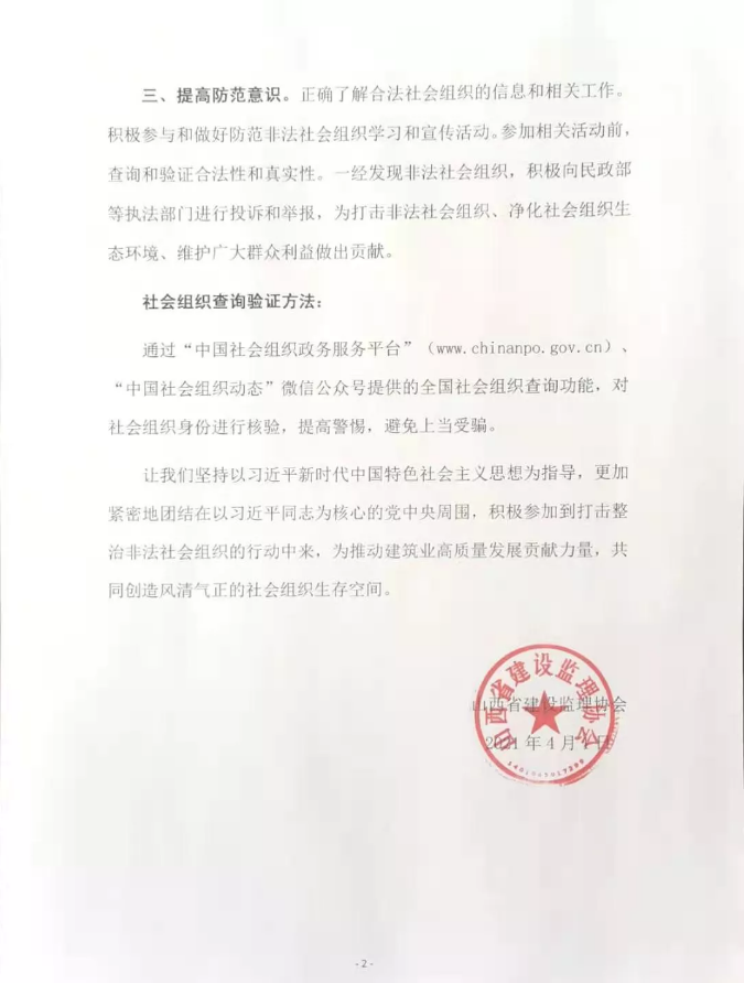 山西省建设监理协会星空网页版抵制非法社会组织的倡议书