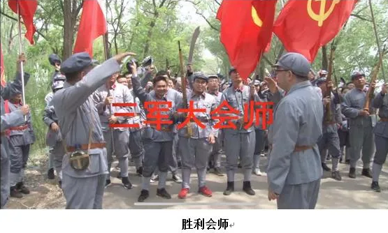 中午12点,3个小时的“重走长征路”活动到达了会师地点,也结束了本次活动,大家一起挥舞着红旗、高高举起武器,庆祝红军胜利会师。