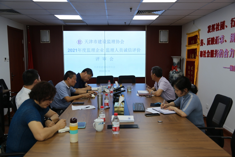 2022年6月10日,天津市建设监理协会根据《监理企业诚信评价管理办法》、《监理人员诚信评价管理办法》有关规定组织召开了《天津市2021年度监理企业、监理人员诚信评价》评审会,诚信评价评审委员会的5位评审委员参加了会议。会议由协会副秘书长赵光琪同志主持。