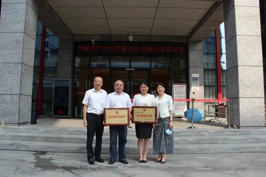 颁授社会组织党建联络站和先进基层党组织牌匾(左二汪成庆)