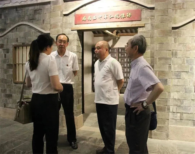 协会党支部书记汪成庆(左三)在黄麻起义和鄂豫皖苏区革命历史纪念馆与大家交流参观心得