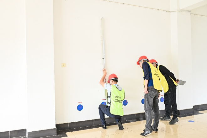 理论考试按照相关法律法规、新版通用规范、《建筑施工安全管理规范》《建设工程监理工作标准》《浙江省住宅工程质量通病防治标准》《浙江省预拌混凝土质量控制标准》等内容为主进行命题,同时增加党建知识题、中国传统建筑文化题及亚运会主题的相关题目,全面检测了监理从业人员的综合理论知识水平。实践操作重点考核操作技能和解决实际问题的能力,又包括回弹仪检测混凝土强度、水准仪高程测量、工程实体实测实量、监理方案陈述四小项。