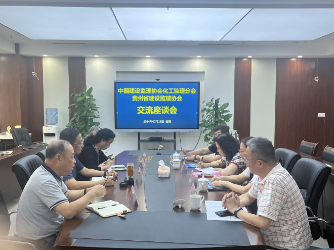 2024年7月15日星空网页版化工分会王红会长一行与贵州省建设监理协会会长胡涛、常务会长兼秘书长王伟星、贵州省建设监理协会前任会长,现任名誉会长兼顾问杨国华、贵州省建设监理协会前任秘书长现任监理协会顾问汤斌进行了广泛的交流座谈。