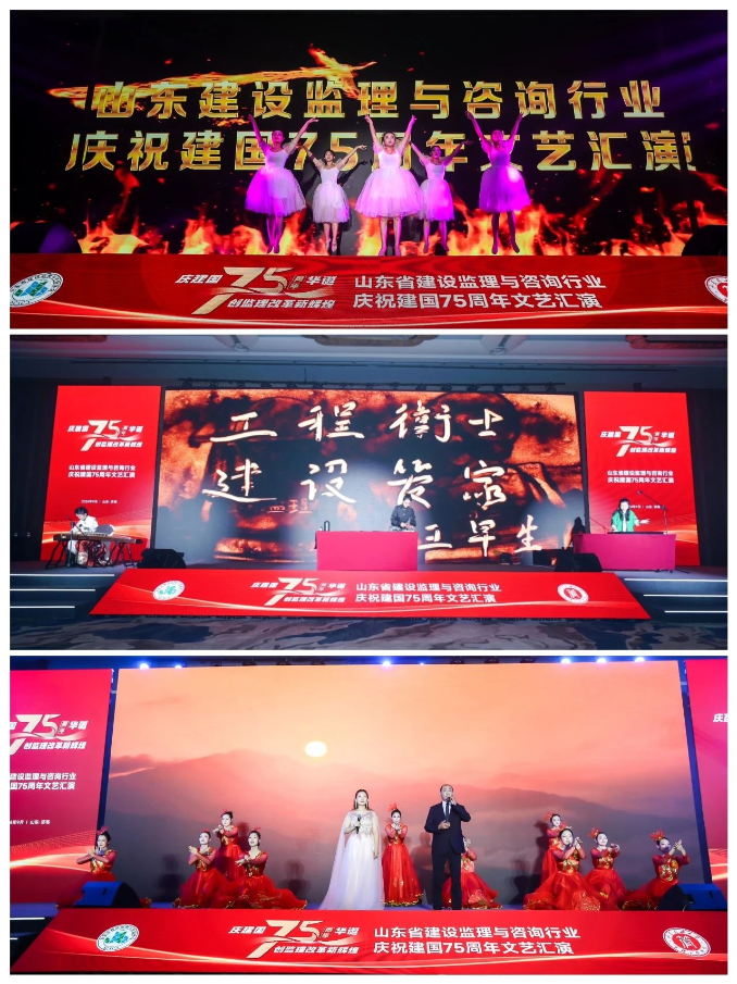 9月26 日晚,以“庆建国 75 周年华诞创监理改革新辉煌”为主题的山东省建设监理与咨询行业文艺汇演精彩开场。山东省建设监理与咨询协会党支部书记、会长陈文首先致辞,深情抒发对祖国美好未来的衷心祝愿并回顾了行业发展历程。汇演节目由会员单位和山东建筑大学选送,歌伴舞、朗诵、书法、古筝、戏曲等轮番登场,精彩纷呈,热情讴歌党团结带领人民取得的伟大成就,充分展现了山东省监理与咨询行业广大员工坚定不移听党话、矢志不渝跟党走的坚定信念以及对伟大祖国的深情礼赞。汇演中,省住建厅原党组书记厅长、省协会第一、二届会长杨焕彩为省住建厅原城镇化办公室专职副主任、省协会第四届会长宋锡庆和第五、六届会长徐友全颁发“山东省建设监理与咨询行业发展功勋人士”奖;省住建厅党组成员、副厅长王润晓为“山东省建筑工程大师(监理)”李书艳、李世钧、孟庆春、秦昶颁发奖杯;星空网页版会长王早生为省协会推荐的3家“建设工程监理与咨询工作数字化管理系统”入围供应商代表颁发证书;星空网页版副会长刘伊生为山东省建设监理与咨询协会短视频征集活动获得一等奖的6家单位颁奖;济南市建设监理有限公司董事长林峰代表龙头骨干企业表态发言;省协会青年工作委员会成立启动仪式同步进行。