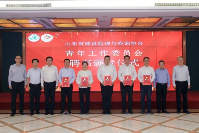 会议举行了授旗与聘书颁发仪式。王晓宏副处长、林峰监事长、谢永刚副会长等为志愿服务总队及9支服务分队授旗,为青工委代表颁发聘书。此外,会议还安排张恒副会长分享了“国外工程监理项目经验与实践”,陈刚副秘书长解读《山东省房屋建筑和市政工程监理工作职责清单》等内容。