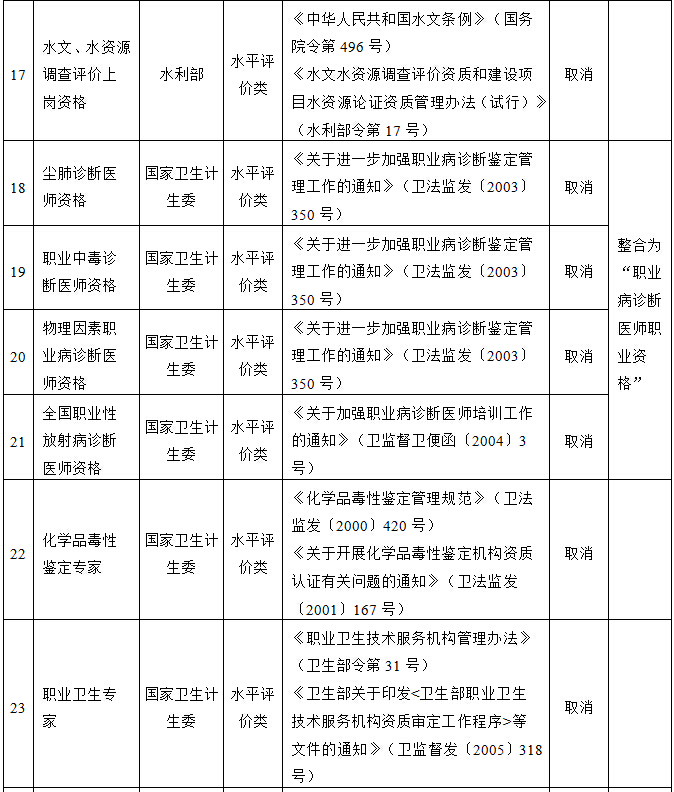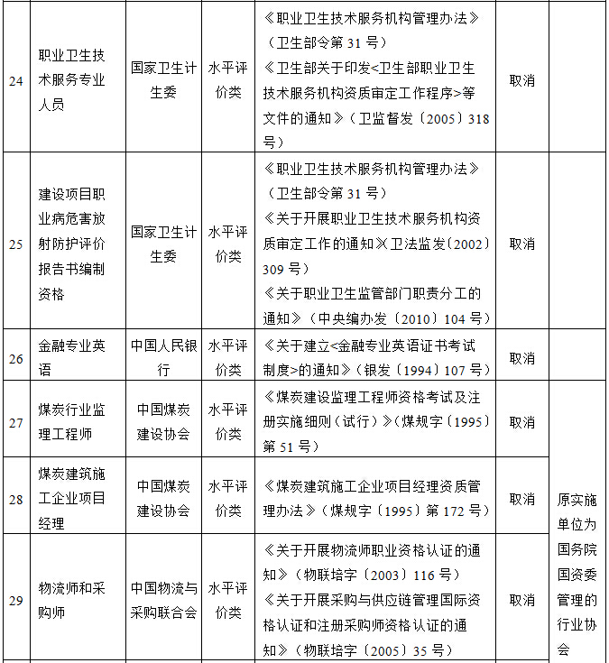 国务院决定取消的职业资格许可和认定事项目录